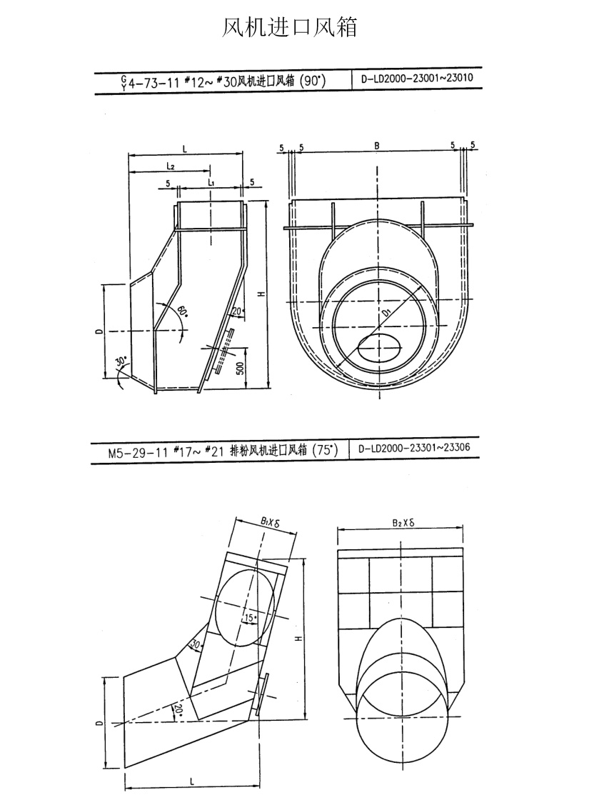 90°風機進口風箱、75°風機進口風箱、60°風機進口風箱、75°排粉風機進口風箱、60°排粉風機進口風箱