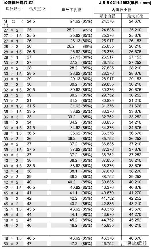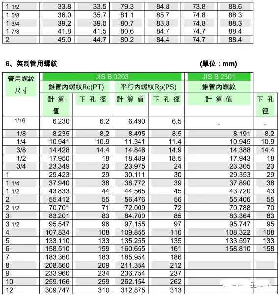 絲錐和鉆頭的參數(shù)對照表--隔熱管托