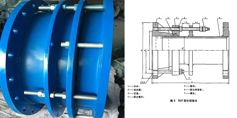 雙法蘭松套限位補償接頭適用于兩邊均與法蘭連接,安裝時調(diào)整產(chǎn)品兩端與法蘭的連接長度,對角依次均勻擰緊壓蓋螺栓,再調(diào)整好限位螺母,這樣就能讓管道在伸縮量范圍內(nèi)可以自由伸縮,鎖定伸縮量,確保管道的安全運行。