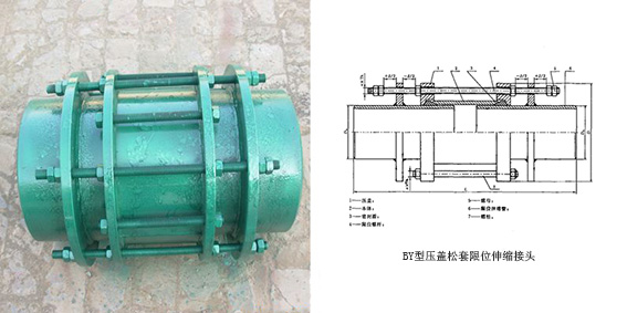 SSJB-3/BY型壓蓋松套限位伸縮接頭是在松套伸縮接頭原有性能的基礎(chǔ)上,增設(shè)限位裝置,在最大伸縮量處用雙螺母鎖定。這樣就實(shí)現(xiàn)管道在允許的伸縮量中可以自由伸縮,一旦超過其最大伸縮量,就起到限位,我們就有效的確保管道的全運(yùn)行,特別適用于有振動(dòng)或有一定斜度及在拐彎的管路中的連接。