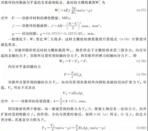 ② 雙錐密封 根據雙錐環的密封原理計算出預緊狀態下主螺栓載荷Wa 和操作狀態下主螺栓載荷Wp ,并根據Wa 、Wp 進行主螺栓設計。