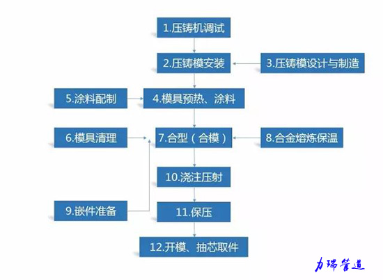 壓鑄:是利用高壓將金屬液高速壓入一精密金屬模具型腔內,金屬液在壓力作用下冷卻凝固而形成鑄件。