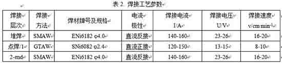 焊前,對(duì)坡口及兩側(cè)各200mm之內(nèi)的氧化層、油污、水分、鐵銹等進(jìn)行清理,具體的焊接工藝參數(shù)如表2所示。