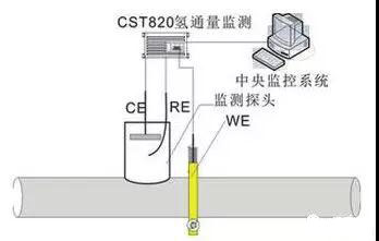 石油天然氣輸送管線、鍋爐酸洗過程由于腐蝕析氫使得原子氫在沒有形成氫分子之前就已經滲入鋼鐵的內部,使其內部原子氫的濃度不斷增加,原子氫在鋼的內部積累導致鋼制設備的韌性下降脆性增加,產生氫損傷并引發突發性惡性破壞事故。因此工業上需要有一種智能型原子氫探測技術來檢測或監檢測鋼鐵結構中氫腐蝕的速率,鋼鐵中原子氫的含量,并顯示設備內部由于氫的積集將要發生腐蝕破壞的危險性。