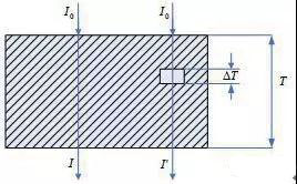 圖 1 為射線穿透物質時的衰減示意圖,透射線強度;當存在一定尺寸的缺陷時,透射線強度(式中I0:入射線強度、μ:吸收系數,μ‘:缺陷部位吸收系數,Is:散射強度)。射線對缺陷的檢驗能力,與缺陷在射線透照方向上的尺寸、其線衰減系數與物體的線衰減系數的差別、散射線的控制情況等相關。只要這些方面具有一定的值,則缺陷將產生一定的物體對比度,它就可以被射線檢驗出來。