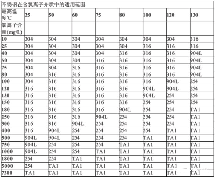 二 幾種隔熱管托用不銹鋼在含氯水溶液中的適用條件