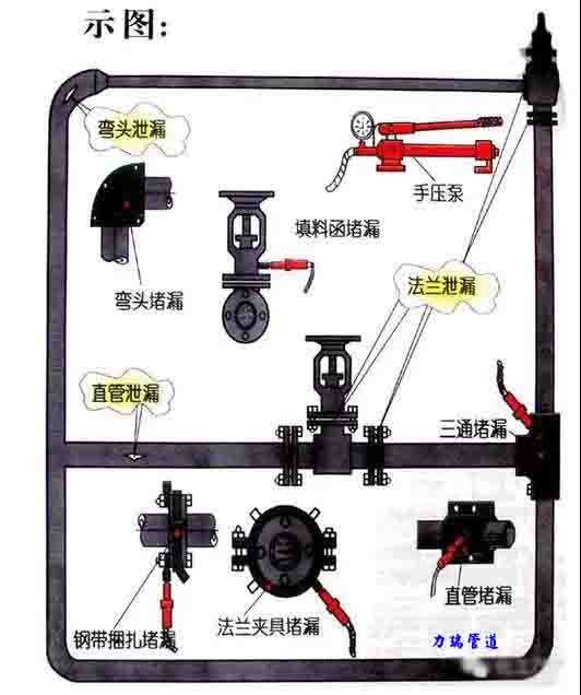 7、脹緊法。堵漏工具隨流體入管道內(nèi),在內(nèi)漏部位自動脹大堵住泄漏的方法,稱為脹緊法。這種方法較復(fù)雜,并配有自動控制機構(gòu),用于地下管道或一些難以從外面堵漏的場合。