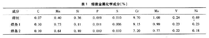 (1)P91鋼管規(guī)格為¢325.5mm×29.5mm,焊接材料由AEC提供,包括¢2.4mm的CM-91G焊絲,¢3.2mm和¢4.0mm的CROMOCORD9M焊條,熔敷金屬化學(xué)成分見(jiàn)表1。
