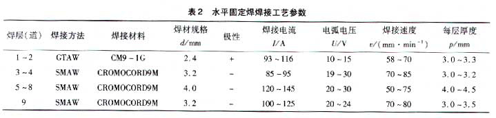(1)水平固定,其焊接工藝參數(shù)見(jiàn)表2。