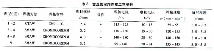 (2)垂直固定,其焊接工藝參數(shù)見(jiàn)表3。